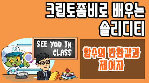 본 포스팅은 크립토좀비(Crypto Zombies)의 레슨1 챕터10 (함수 더 알아보기 편)의 내용들을 비개발자를 대상으로 설명하고 풀이 하였습니다. 크립토좀비는 룸 네트워크(Loom Network)라는 블록체인 기반의 게임 스타트업이 만든 게임을 만들어보는 이더리움 개발 강의로서 매우 재미있고 쉽게 솔리디티(Solidity)를 배울 수 있는 가이드를 제공합니다. 함수의 반환(Return)값 솔리디티는 자바스크립트(Javascript)와 유사하나 몇가지 추가적으로 설정을 해야 되는 것이 있습니다. 개발자의 입장에서는 귀찮을 수 있겠지만 돈이 움직이는 것이니, 귀찮더라도 명시적으로 설정을 하는 것이 프로그램 입장에서나 프로그래머 입장에서나 컨트랙트를 이해하는데 유리할 것입니다. 솔리디티에서 반환값 설정 ..