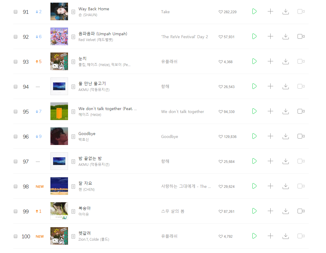 멜론에서 곡을 내면 1위를 우습게 하는 Zion T가 부른 헷갈려는 이제 100위고, 마찬가지로 1위를 밥 먹듯이 하는 폴킴, 헤이즈는 93위이다. 그 위에 아직도 Way Back Home이 있다 도대체 멜론에서 유플래쉬를 얼마나 미워하길래 순위가 이따위로 나오며 유플래쉬 응모만 3만명 가까이 되었는데 헷갈려같은 곡의 좋아요는 4792밖에 안되는지 이해가 되질 않는다.