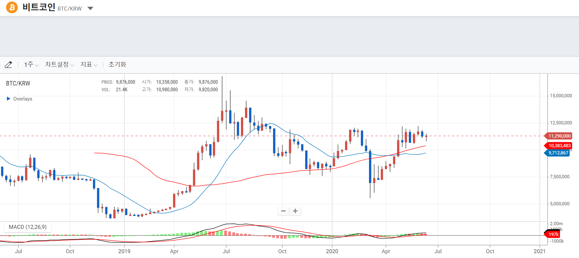 우선 반감기 이후 사람들은 비트코인의 바닥이 얼만지 알지 못한다는 것이다. 일단 포스팅을 쓰고 있는 현재 비트코인은 약 9000달러 초중반대를 왔다 갔다하고 있다. 원화로 1120만원 정도로 순수하게 반감기를 그대로 타격 받았다면 비트코인의 가격은 반감기전으로 따질 경우 560만원 정도이다.