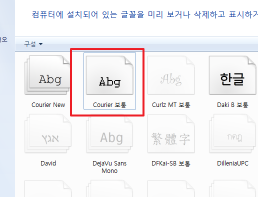 위 화면처럼 Courier 보통 폰트도 활성화가 된 것을 확인할 수 있습니다.