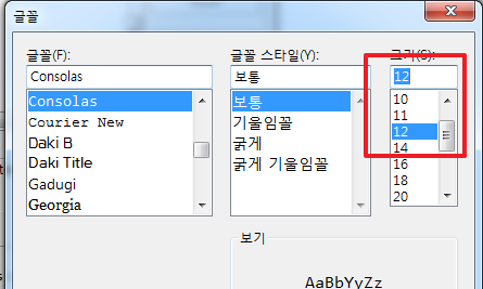제가 일반적으로 많이 쓰는 폰트 크기는 12 정도입니다. 저한테는 이 크기가 가장 무난하더군요.