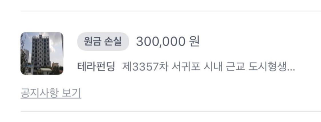 당시 개인 P2P와 동시에 부동산 소액 투자를 진행했었는데 그나마 테라펀딩(tera funding)에서 시작한 부동산 소액투자로 수익이 나름 쏠쏠 했습니다. 암호화폐에 비하면 진짜.. 소소한 금액이지만 암호화폐로 난 수익들의 일부는 적금으로 돌리지 않고, 부동산 소액투자로 전환시켜서 진행하였는데 당시 종목당 50만원 정도로 투자를 진행하였습니다.