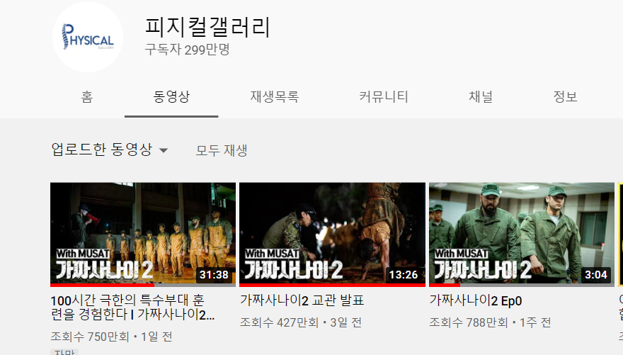 예고편이라 할 수 있는 Ep0은 한국사람들만 봐서(참고로 영문 자막이 없고, 댓글을 보면 영어가 없다) 조회수 788만회라는 대기록을 보여줬으며 피지컬갤러리는 300만명 코앞(현재 시간 299만명)까지 오게 되었다.