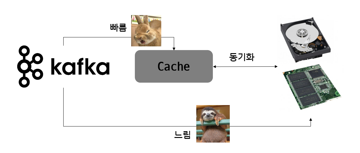 카프카(Kafka)에서는 페이지 캐시 기능을 써서 매우 높은 처리 속도를 가지고 있다. 페이지 캐시 기능은 OS에서 사용하는 페이지 캐시와 동일한 것이며, 메모리(RAM) 영역에 어플리케이션이 사용하는 부분을 할당하고 남은 잔여 메모리를 캐시로 전환하여 디스크 접근을 최소화해 I/O 성능을 향상시키는 메모리 영역이다.