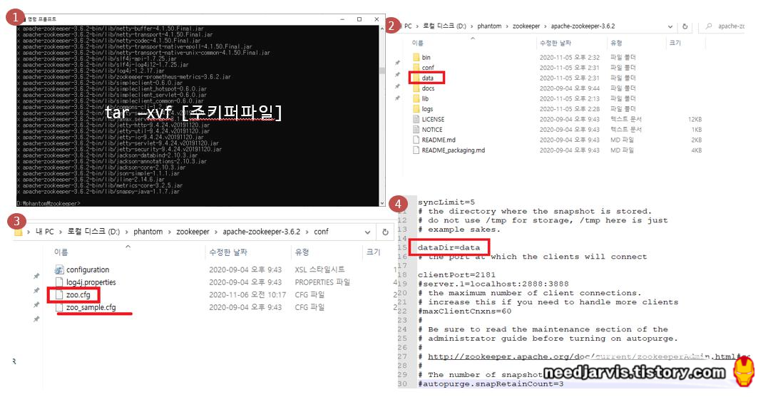 1. 원하는 폴더에 압축 파일을 옮긴 후, Command(cmd) 창을 열고 해당 위치로 가서 tar -xvf [주키퍼파일]을 입력한다.