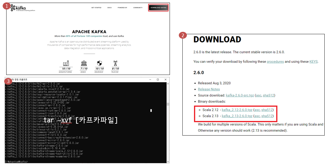 3. 원하는 위치로 파일을 이동 후, tar -xvf [카프카파일]로 압축을 해제한다.