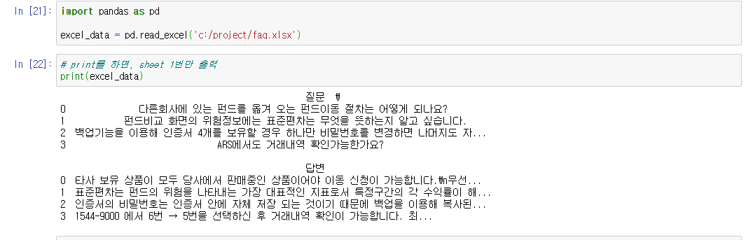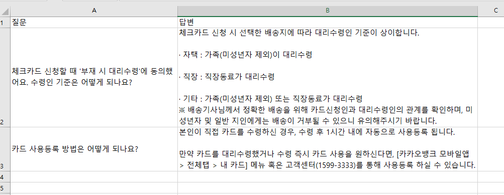 excel_data = pd.read_excel('c:/project/faq.xlsx', sheet_name='카카오')