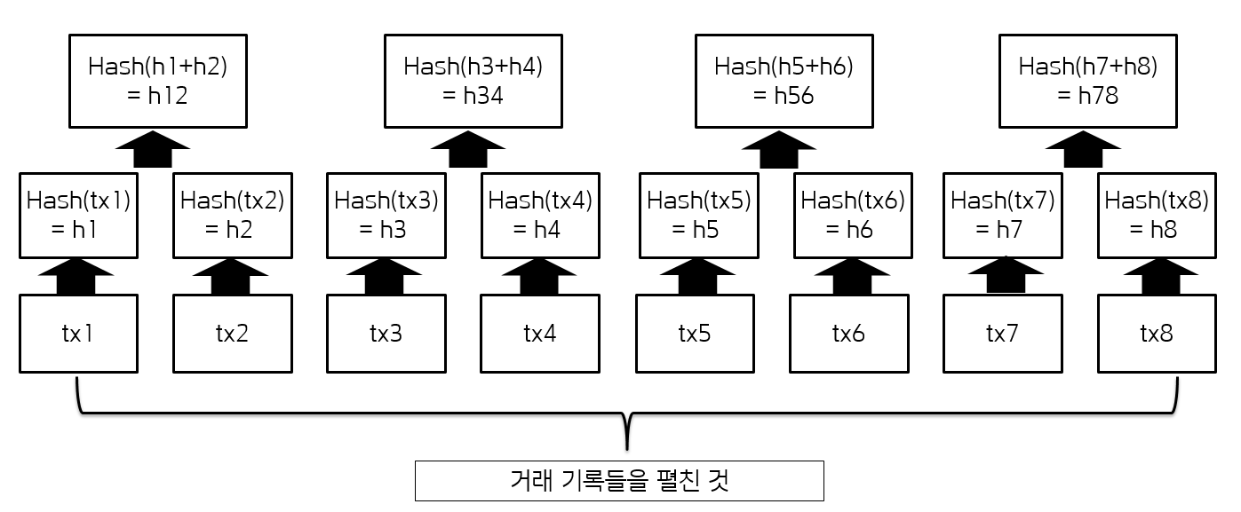 머클트리는 모든 값들을 해쉬화하며, 이 값들을 모두 합쳐서 하나로 올리기 때문에 누군가가 블록을 조작을 할 경우 쉽게 알 수 있다. 값을 하나만 살짝 바꿔도 상위 해쉬값들이 변형되게 되며, 이를 통해 쉽게 알 수 있다.