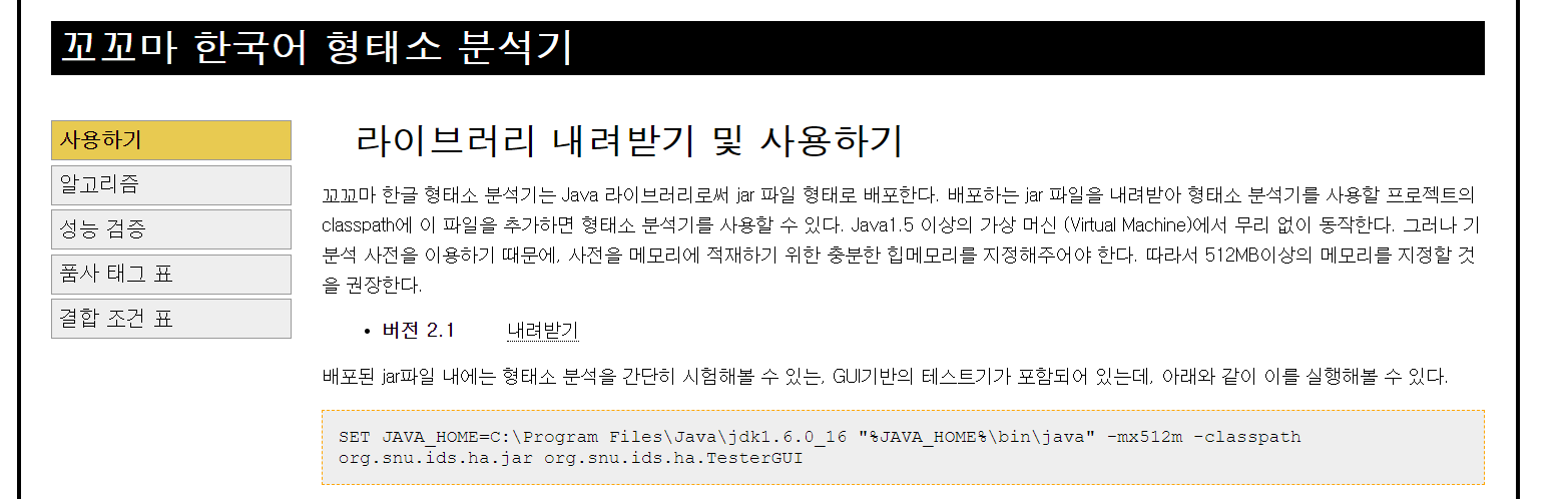 우선 Kkma(꼬꼬마)를 사용할 예정인데 꼬꼬마가 다양한 기능을 제공하지만 속도가 다른 형태소 분석기에 비해 압도적으로 느리기 때문에(어떻게 개발했는지 궁금할 정도) 속도에 민감한 곳에서는 사용이 힘들다.