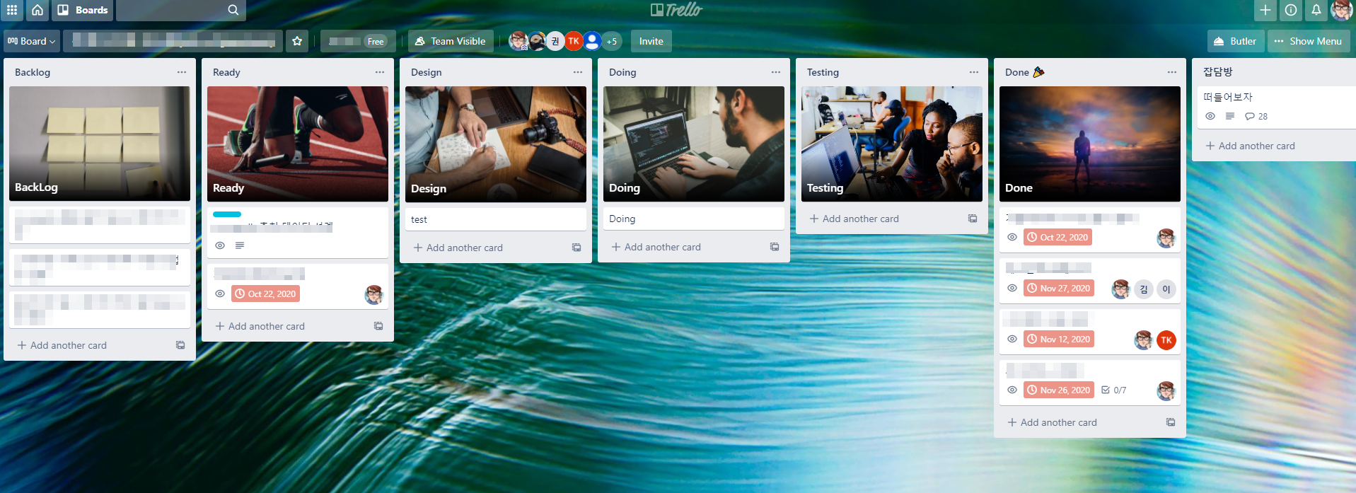 WBS는 큰 Task만 적기 때문에 상세한 작업은 알기 힘이 드는데 칸반을 사용해서 Task를 더 잘게 나눠서 관리를 하게 되면 매우 편리하다. 프리드캠프를 쓰다가 잠깐 트렐로(Trello)로 전환하게 되었는데 트렐로는 상태값을 더 많이 나눌 수 있는 장점이 존재한다.