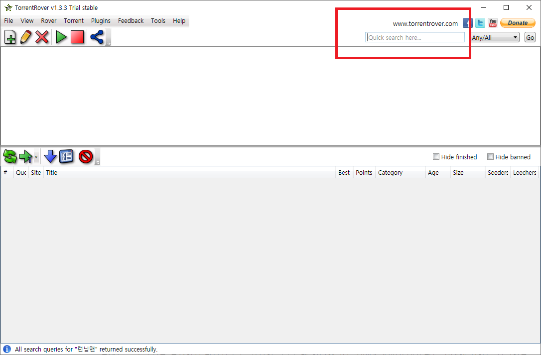 설치한 프로그램을 실행하면 위와 같은 화면이 나오는데 여기에 있는 Quick Search Here라는 위치에 원하는 검색어를 입력한다.