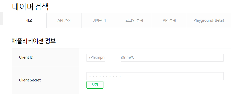 등록하기를 완료하면 이렇게 Client ID와 Client Secret이라는 값들이 발급되는데 이 2개의 값은 추후 API를 호출할 때 필수로 넣어야 되는 값이다. 키를 발급 받았으면 이제 Java로 간단히 검색을 하는 예제를 만들어보도록 한다.