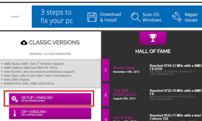 위 링크된 사이트를 들어가서, SETUP ENGLISH라고 되어 있는 버튼을 선택하면 설치 파일을 받을 수 있는 사이트로 이동하게 된다.