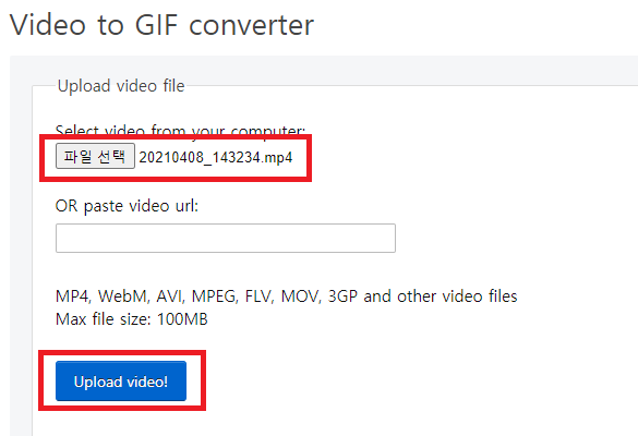 우선 파일 선택을 클릭하여 내 비디오를 선택 한 후, 하단의 Upload video!를 클릭하여 비디오를 업로드 합니다.