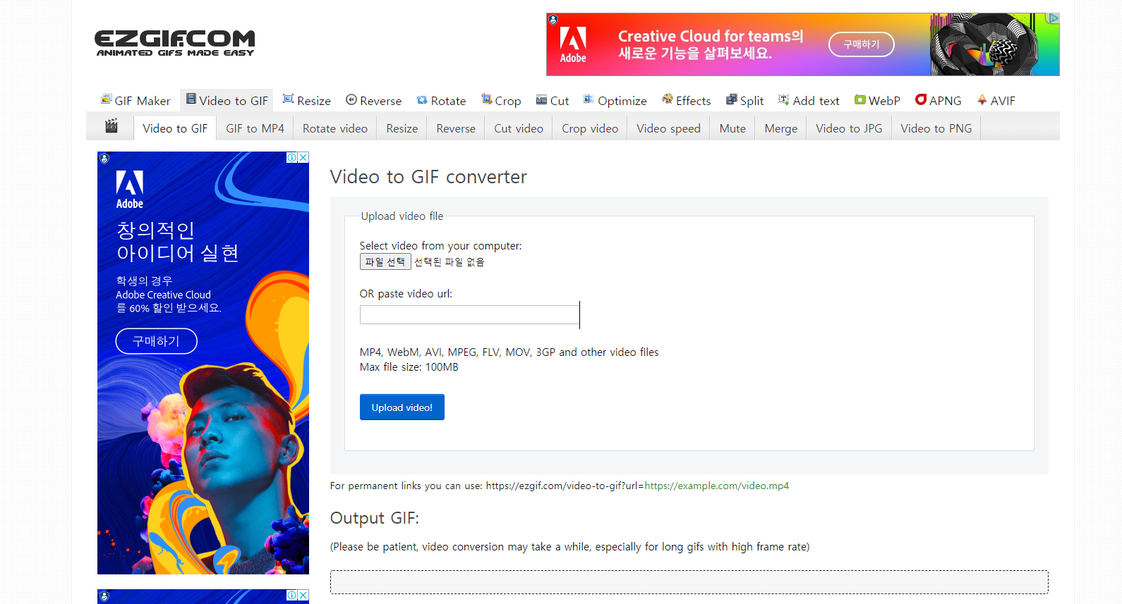 위 링크된 사이트로 가면, 비디오를 올리면 GIF로 변환시켜 줍니다.