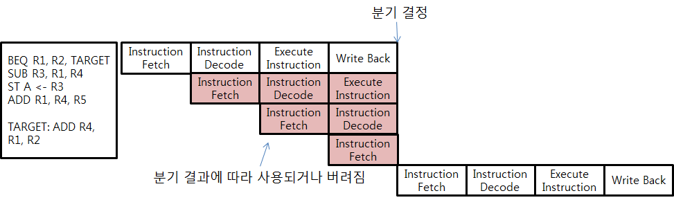 - 분기 명령어에 의해서 발생, 분기가 결정된 시점에 수행되지 않을 명령이 파이프라인에 존재