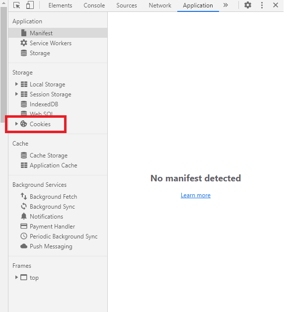 어플리케이션 화면 밑에 Storage라는 저장소가 있는데 여기서 Cookies를 선택한다.