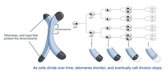 인간이 만약에 영원히 살 수 있다면 어떻게 해야 살 수 있을까? 암이 발생되지 않는 상태라면 정답은 텔로미어(telomere)를 무한히 활성화 시키는 것이다. 텔로미어는 염색체의 양 끝에 붙어 유전자의 손상을 막아주는 역할을 하는데, 세포가 분열할수록 마치 무릎의 연골이 닳듯 감소(모양은 신발끈처럼 생겼음)한다.
