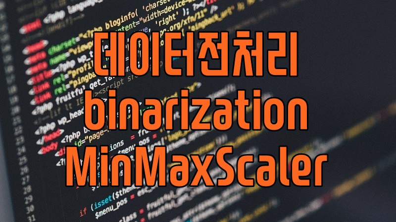이진화를 만들기 위해서는 기준값(threshold)가 필요한데 이 기준값보다 높으면 1, 낮으면 0의 값을 세팅하는 어찌보면 매우 간단한 기능이라 할 수 있다. 충분히 개인이 펑션등을 만들어서 이진화를 구현할 수 있지만 여기서는 사이킷런(Sci-kit)에서 제공하는 전처리(preprocessing) 라이브러리로 이진화 기능을 사용해보도록 한다.