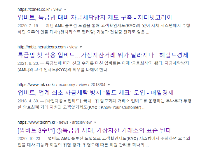 [4] [블록먼데이]특금법 D-200…AML 완성한 빗썸·업비트, https://www.bloter.net/newsView/blt202009070009