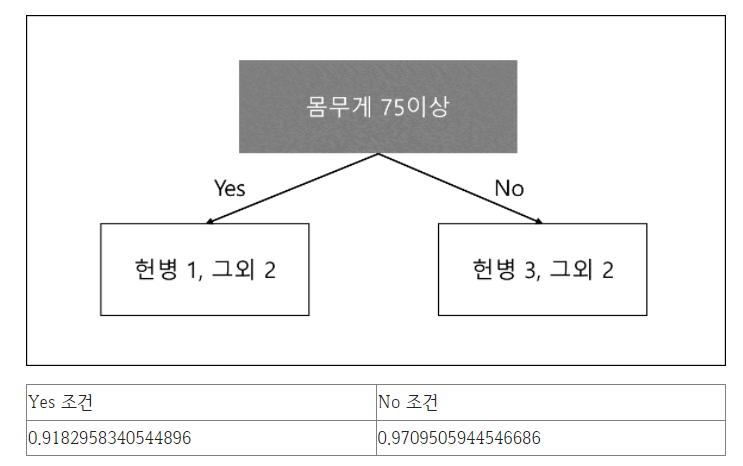 이때 몸무게 75kg 이상은 아래와 같은 엔트로피값이 나왔다.