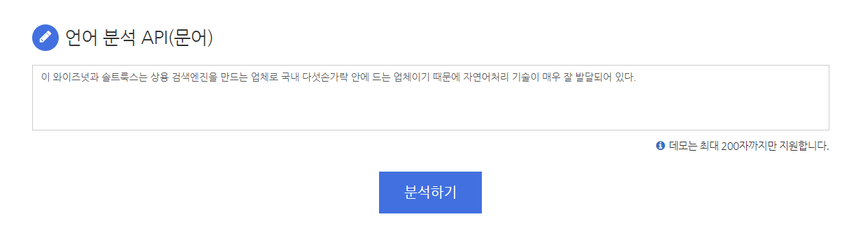 엑소브레인 데모페이지에서 문장을 입력한 후, 분석하기를 클릭하면...