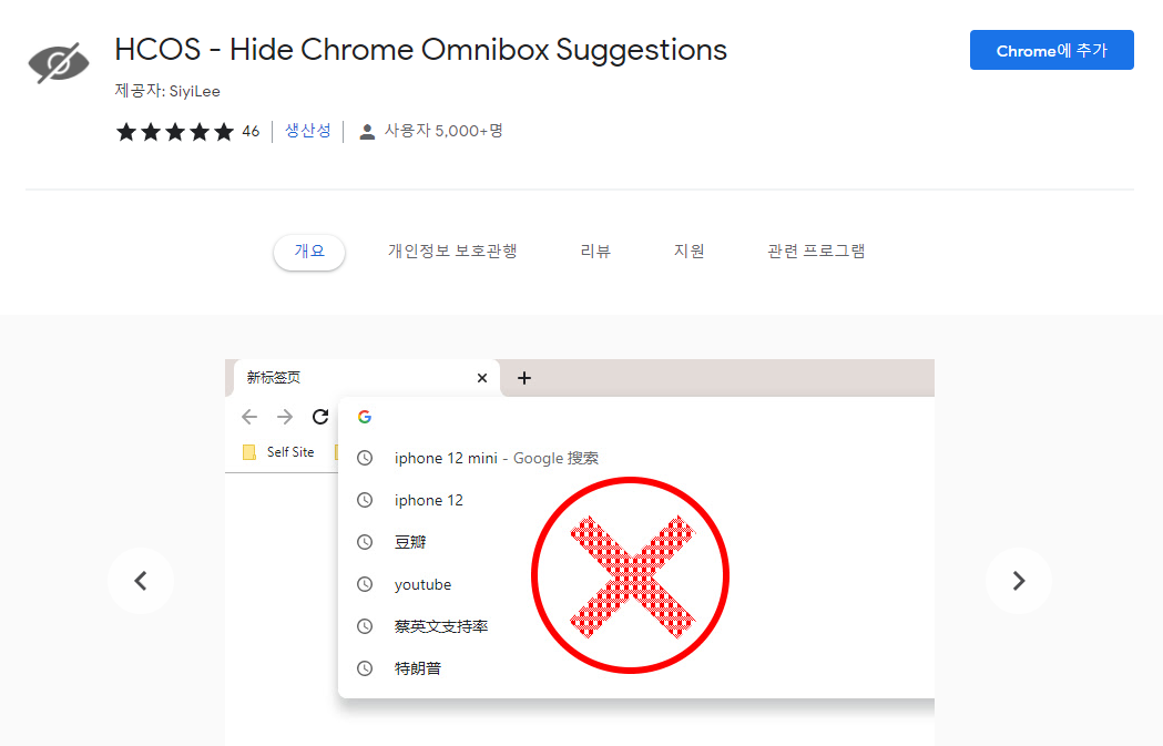 아래 링크의 확장 프로그램을 설치하면 주기적으로 방문 기록을 삭제해버린다. 방문 기록이 없으니 추천검색어가 뜨지 않는 원리인데 호불호가 있는 프로그램이다보니, 불편한 상태에서도 쓰고 Fix 될 때까지 존버하든지 주기적으로 방문 기록을 삭제하는 확장 프로그램을 쓰는 방법 밖에 없는 듯 하다.