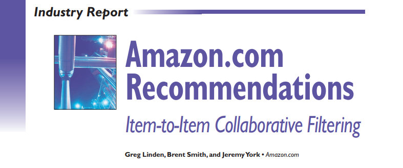 사실 아마존은 다른 업체보다 추천 시스템을 빨리 사용했으며, 협업 필터링을 무려 2003년부터 사용한 것을 알 수 있습니다.