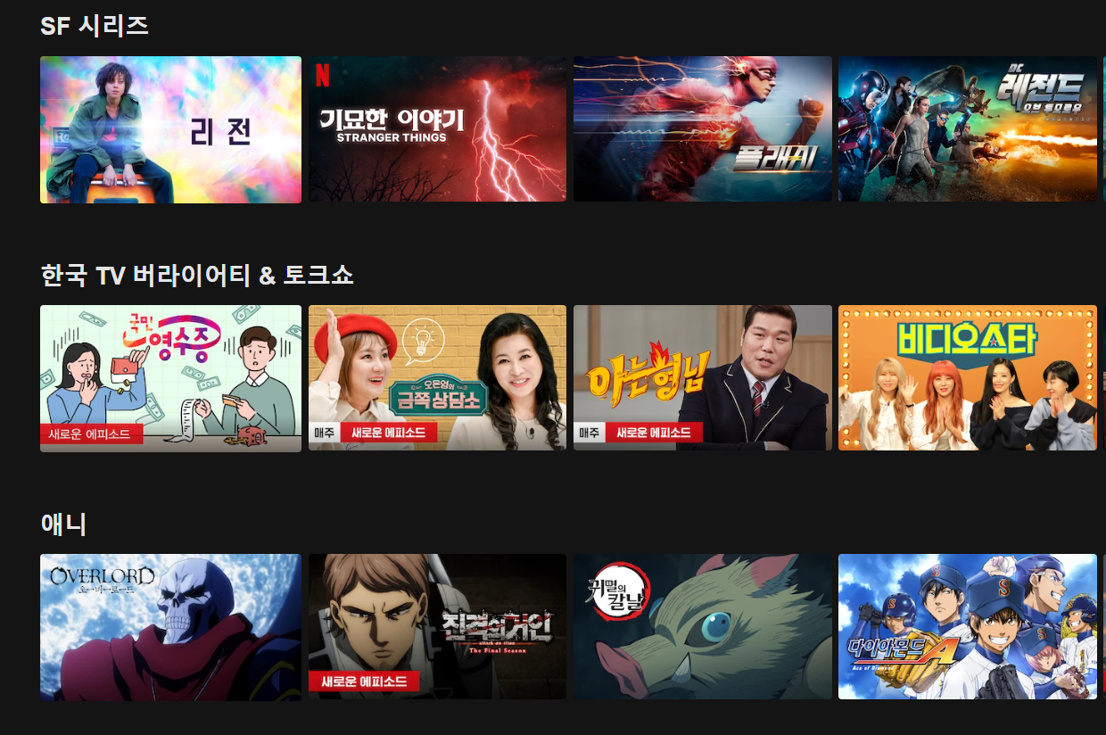 위와 같이 특정 주제별로 사용자가 선호할만한 영상을 추천을 하여 확장성을 좀 더 높이는 작업입니다. 추천 큐레이션의 경우 사용자의 선택이 좀 더 폭넓어질수 있으며, 사용자 역시 컨텐츠 탐색이 줄어들게 되는 1석 2조의 방식이라 대세가 되고 있는 방식입니다.