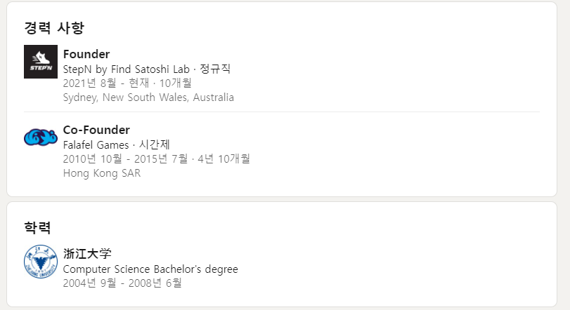 기본적으로 중국인들로 구성된 암호화폐입니다. 저는 개인적으로 중국 기반의 암호화폐를 좋아하지 않습니다. 물론 중국 화폐가 한국 암호화폐보다는 구조적으로 낫다고 생각하는데 중국 공산당이라는 리스크 자체를 좋아하지 않고, 주식도 중국 관련주를 단 한 번도 사지 않을 정도였죠. 그리고 암호화폐를 오래 한 사람들이라면, 중국 코인이 그동안 얼마나 사라졌는지 알고 있을 겁니다. 일단 중국이라는 불안한 마음이 있지만, 링크드인으로 경력을 확인해보도록 하겠습니다.