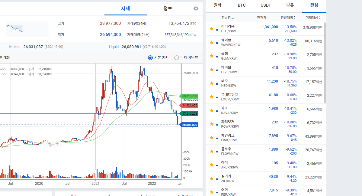 사람들은 그동안 매도하지 않던 이더리움이 시장에 나올 것을 두려워해 이더리움을 던지게 될 것이고, 이더리움 프로젝트의 붕괴라는 겹겹의 악재가 이더리움이 금일 가장 많이 빠지는 암호화폐 중 하나로 기록되게 된 것이다.