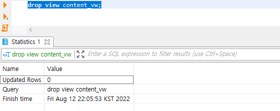 drop view content_vw로 성공적으로 view가 삭제된 화면이다