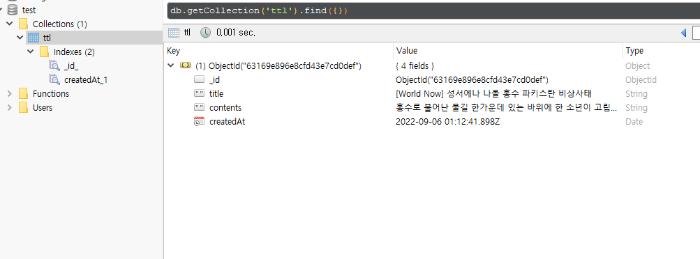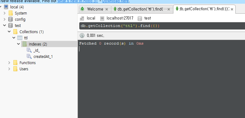 위와 같이 createdAt이 만료된 것들이 하나씩 삭제가 되는 것을 확인 할 수 있습니다.