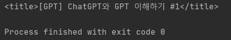 위와 같이 title이라는 태그를 입력하면, title에 적힌 내용을 리턴하여 변수에 담게 됩니다. 이번에는 title 태그가 아니라 포스팅의 Html 태그를 캡쳐 했던 jb-content-title 클래스가 있는 태그값을 가져와보도록 하겠습니다.