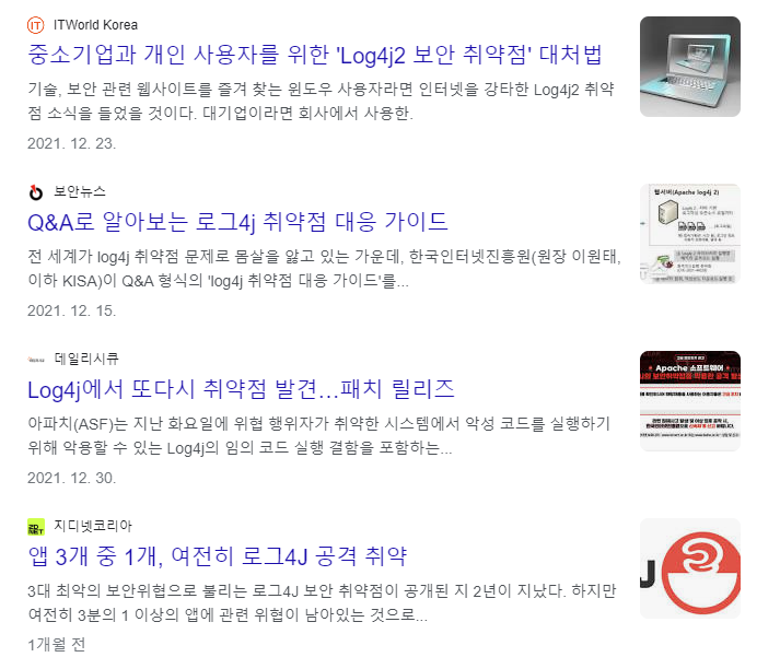 한동안 떠들썩 하던 보안 경고는 사실 끝난 것이 아닐지도 모른다. 그래서, Log4j 혹은 Log4j2보다는 Logback을 사용하길 권고하고 싶다. 특히 Log4j2는 특별한 일이 없으면 웬만하면 사용을 자제하는 것이 좋을 것이다.